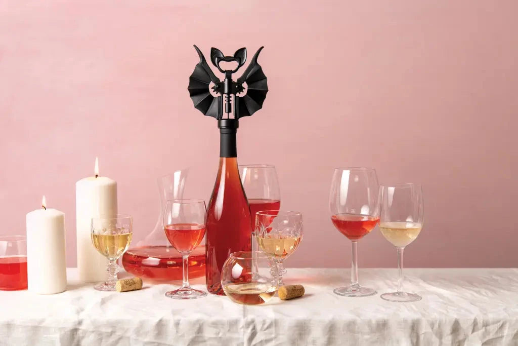 Ce mystérieux tire-bouchon et ouvre-bouteille Ototo prend la forme d’une chauve-souris espiègle. Vino agite ses ailes avant d’atterrir sur votre bouteille de vin, prêt à percer la capsule sans éclaboussure. Parfait pour déboucher votre bouteille rapidement et laisser Vino se reposer dans l’obscurité. Un cadeau parfait pour les amateurs de vin rouge intense et une surprise originale pour une pendaison de crémaillère. Dimensions : 140 mm de long, 40 mm de large, 180 mm de haut.