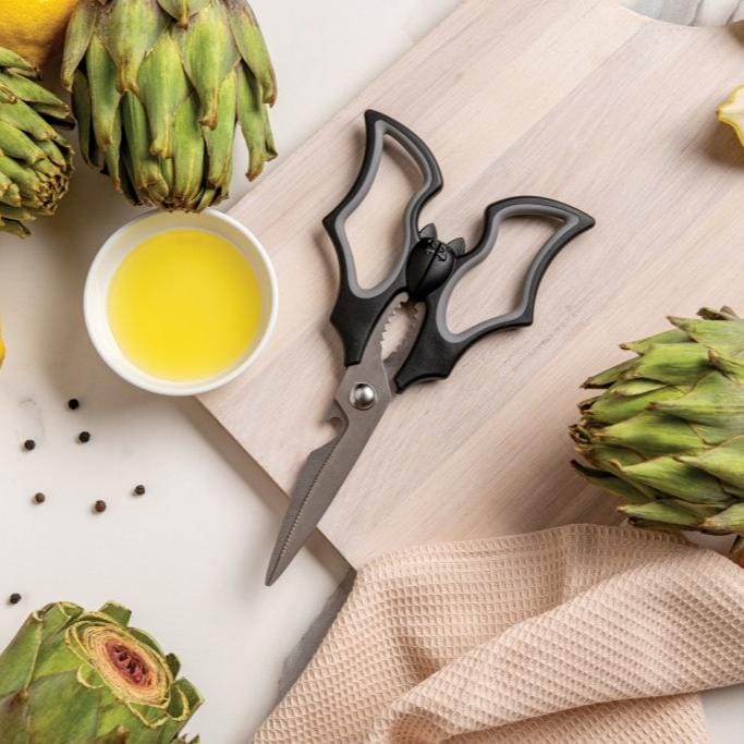 Tiens fermement ces ciseaux d'Ototo, sinon la chauve-souris s'envolera ! Elizabat se cache dans ton tiroir sombre jusqu'à ce qu'on ait besoin d'elle. Les ciseaux multifonctions coupent, ouvrent les bouteilles et cassent les noix.